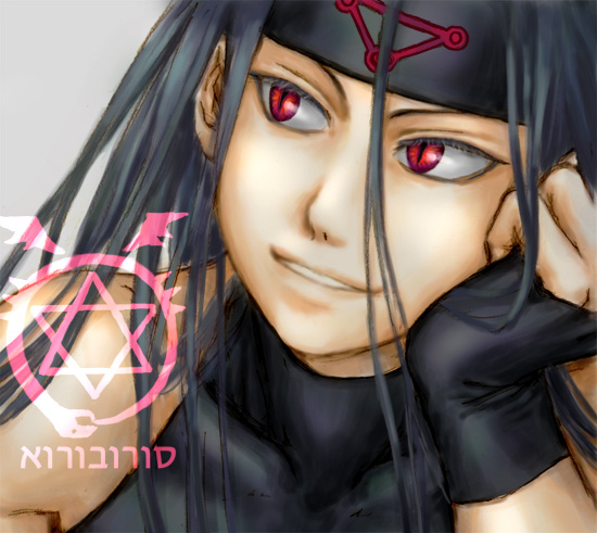 エンビ単品カラーリング修行作その2。自分に合う塗り方を探し途中です。そして試行錯誤のせいで時間だけはかかったけど微妙…。 でも、ウロボマーク部分だけは気に入ってます(って言いながらカタチいびつですが)。 以下、蛇足なうんちく。 マークの下に着いてる文字は、ウィキペディアヘブライ語版からとった「ウロボロス」の文字です。最初は英語にしようと思っていたのだけど、英語だと正式綴りが"Ouroboros"らしくて、え、「U」ではじまるんじゃないのか…と違和感を持ってしまったため、じゃあどうせなら、とヘブライ語にいきました。錬金術関係の文献にはヘブライ語がよく出てくるみたいなんで。 それにしてもうちのサイト、にやけ顔エンビ率が高い…。 2008/11/19 |